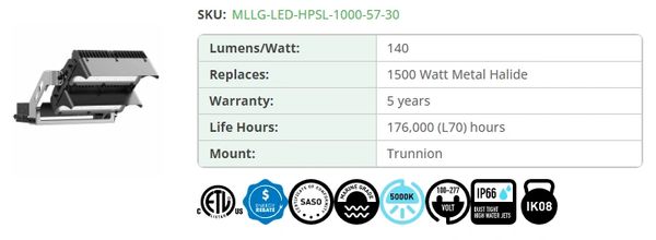 600 Watt LED Area Flood Light | 84000 Lumens | 5000K | 277V-480V