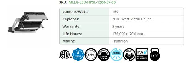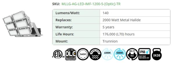 1200 Watt LED Area Flood Light | 168000 Lumens | 5000K | 100-277V
