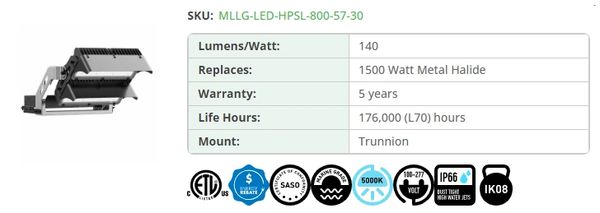 800 Watt LED Area Flood Light | 112000 Lumens | 5000K | 100V-277V